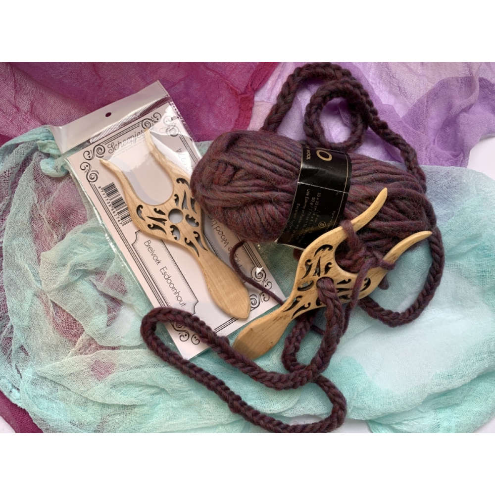 Mooi bewerkte houten breivork. Kinderen vinden het heerlijk om eindeloos lange koorden te maken. Waar weer tasjes, onderzetters, dekentjes voor poppen of beren van gemaakt kunnen worden. Fijn om mee te nemen op vakantie. Mogelijkheden zijn eindeloos.