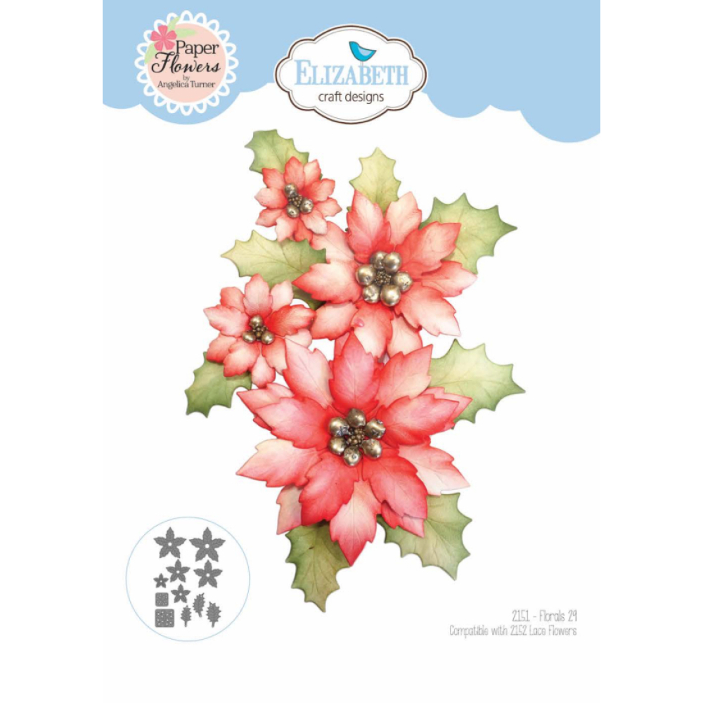 Dies Ecd Florals 29, prachtige set dies voor het stansen van deze mooie kerstroos in je journal, of agenda, kerstkaarten of versiering van een kado.