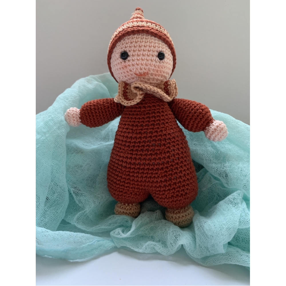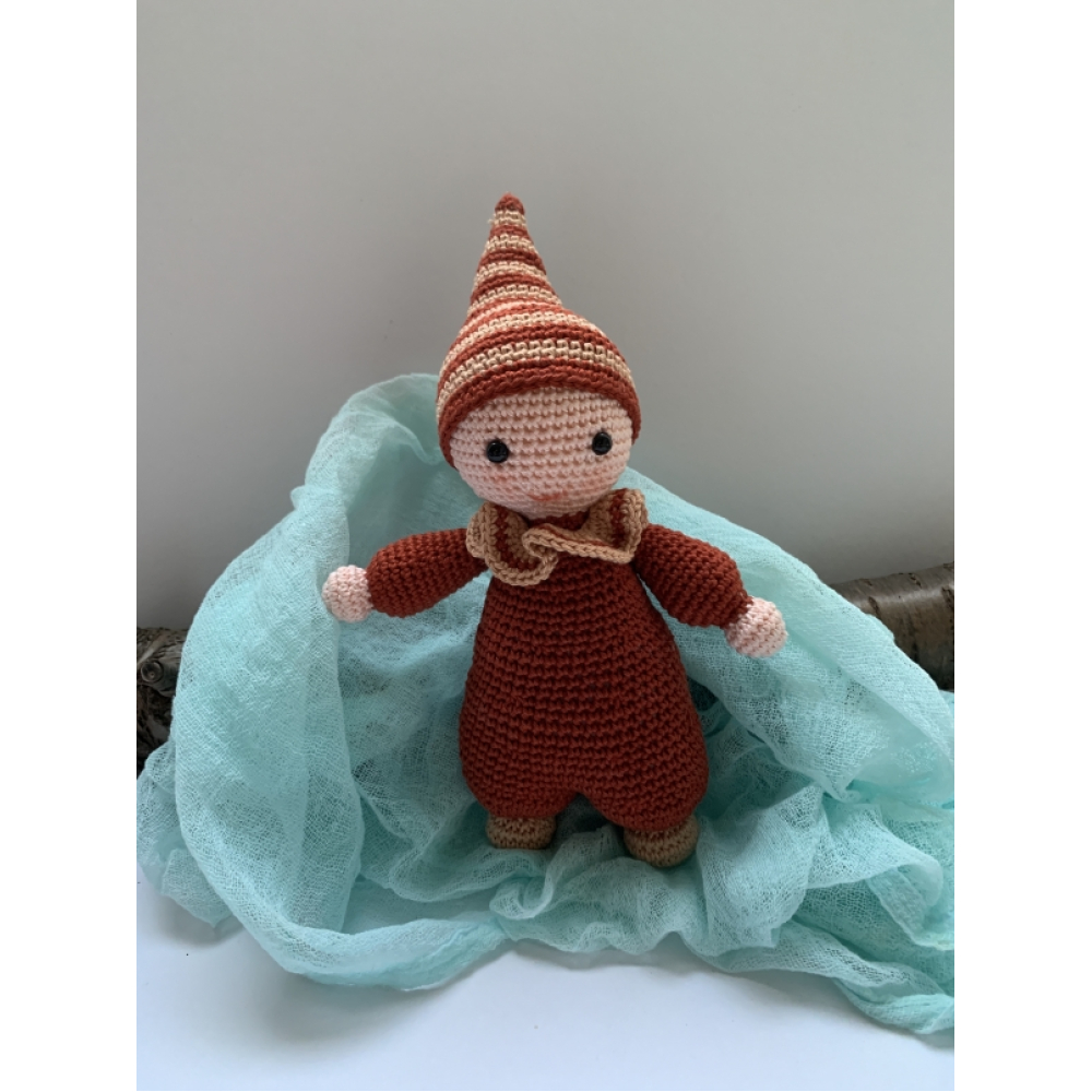 Deze hand gemaakte kabouter knuffel wil met een vriendje de wereld verkennen. Een fijne knuffel voor een dreumes of kleuter.