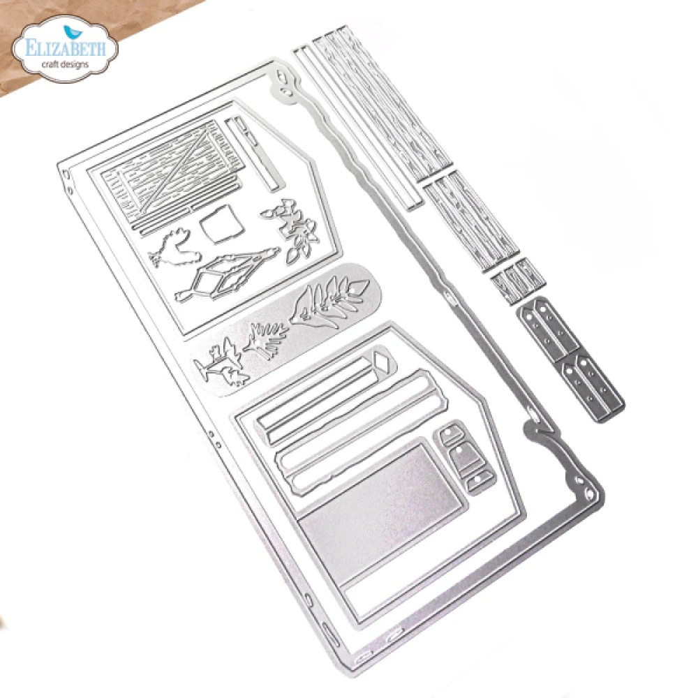 Set met 18 stansen voor het maken van een tof tuin schuurtje voor je planner, een kaart of mixed media project.
