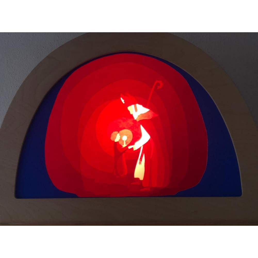 Deze sfeervolle Nicolaas adventsbode transparant, brengt sfeer in uw huis door zijn warmrode gloed.