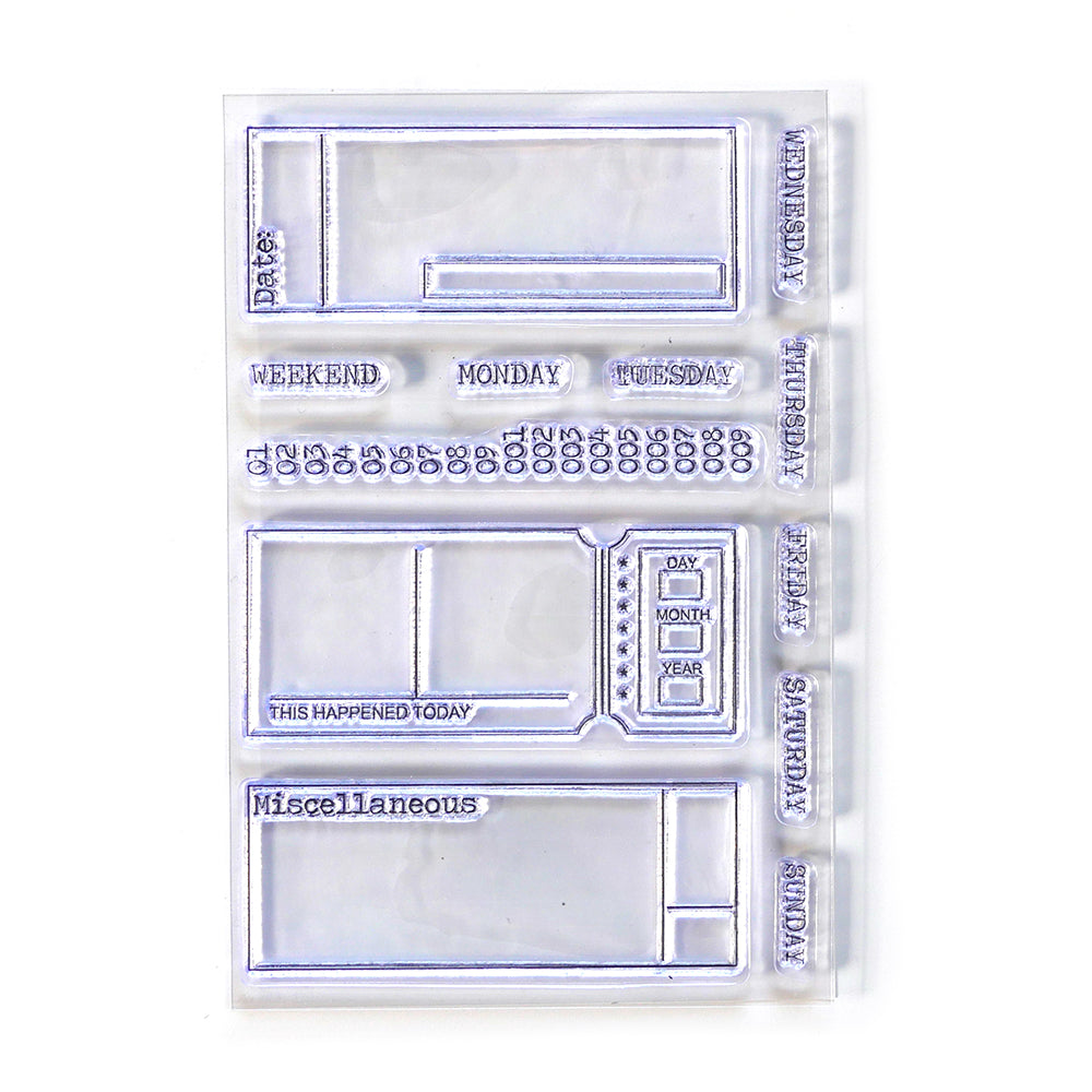 ECD Clear stamps - Sidekick stamps 2 Basis stempelset met diverse stempels voor het maken van je planner. Bevat diverse vakken, cijfers en de dagen van de week (in het Engels). Elizabeth Craft Designs clear stamps zijn speciaal ontworpen voor gebruik in planners. De stempelset is ontworpen door designer van Elizabeth Craft Designs Esther Glas. De set heeft een afmeting van 15 x 10 cm en bestaat uit meerdere losse stempels. Voor het gebruik van de clear stamps haal je ze voorzichtig van het plastic vel af en plaats je ze op een acrylblok. Breng inkt aan en stempel de afbeelding op de gewenste plek. Veeg de stempel schoon met een babydoekje (zonder olie) en daarna droog met een tissue. Na gebruik terugplaatsen op het plastic vel.