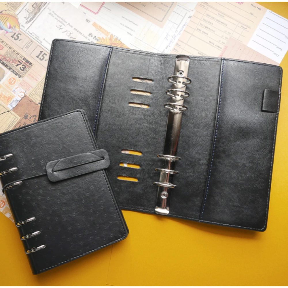 ECD planner P021 - Vintage Black. de buitenkant is zwart met een klein werkje, de binnenkant zwart. Deze planner van het merk Elizabeth Craft Designs beschikt over een ringband met 6 ringen en een handige elastiek. De binnenkant is voorzien van praktische opbergvakjes voor foto's, tickets of stukjes papier. De stevige kunstleren omslag zorgt ervoor dat jouw planner netjes blijft en dat je hem makkelijk overal mee naar toe kan nemen. De planner heeft een A5 slim size formaat en wordt leeg geleverd. Perfect te combineren met de dies (stansen) en stempels van ECD.
